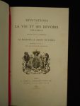 • VICTORIA (Reine). Méditations sur la vie et ses devoir religieux. Paris, E. Dentu, 1864 ; in-8, maroquin grenat, sur les plats encadrements de motifs et filets dorés avec petits fleurons aux angles, dos à nerfs orné de motifs dorés, tranches dorées, [rel. de l'époque].