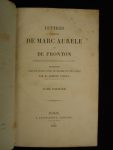 • MARC AURÈLE. Lettres inédites de Marc Aurèle et de Fronton, retrouvées sur les palimpsestes de Milan et de Rome. Paris, Levavasseur, 1830 ; 2 vol. in-8, basane racinée, dos lisse orné de motifs dorés, pièces de titre et de tomaison vertes, tranches cailloutées, [rel. de l'époque], rares épidermures.