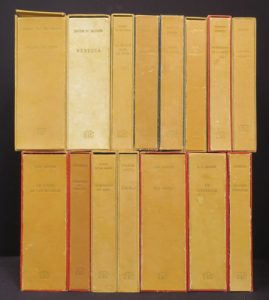 [LITTÉRATURE]. Ensemble de 15 ouvrages de littérature, illustrés. Monte-Carlo, Éditions du livre, 1947-1948 ; 20 vol. pet. in-8 brochés, sous 15 chemises et étuis, quelques petits défauts aux chemises et étuis. • COLETTE. L’Ingénue...