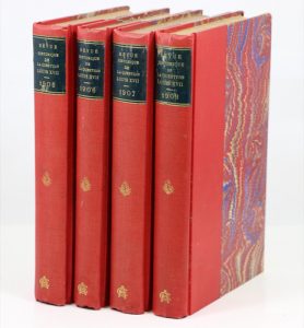 [LOUIS XVII]. Revue Historique de la Question Louis XVII. [Années complètes 1905-1906-1907-1908]. Paris, H. Dragon, 1905-1908 ; 4 vol. in-8, bradel demi-toile cerise, dos lisse orné d'un fleuron doré, chiffres dorés C.A.G. en queue. 298 p.—...
