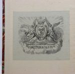 Très bel ex-libris armorié gravé du comte d'Antras de Gardères « Sans regrets du passé ny peur de l'advenir, toujours les roses refleuriront. »