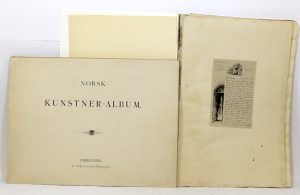 • [PHOTOGRAPHIE]. Norsk Kunstner-Album. Christiania (Copenhague), H. Abel’s Kunstforlag, 1889 ; in-folio, en feuilles sous chemise cartonnée à rabats, mouillures, coins émoussés.