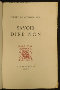 • Savoir dire non. Lyon, H. Lardanchet,1941 ; in-8, broché, non coupé.
