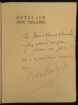 MONTHERLANT (Henri de). Notes sur mon théâtre. Paris, L'Arche, 1950 ; in-8, broché, non coupé. Édition originale. L’un des 25 exemplaires du tirage de tête sur papier vergé d’Arches (n° XVII). Envoi autographe signé à Monsieur Maurice...