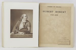 NOLHAC Pierre de. Hubert Robert. 1733-1808. Paris, Goupil Cie, 1910 ; pet. in-folio, broché, couverture imprimée rempliée, chemise et étui (étui un peu fatigué). Portrait en couleurs de l'artiste en frontispice, 49 planches hors-texte, dont...