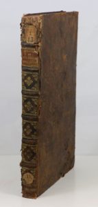 Cachet. Coiffes arrachées, travaux de vers sur les mors et aux plats, gardes manquantes, de même qu'une planche précédant le texte, elle aussi découpée, papier bruni par endroits mais couture solide, texte complet, exploitable en l'état