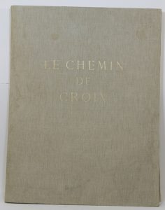 POLAT (Tigrane). Le Chemin de la Croix. Suite de quatorze eaux-fortes de T. Polat présentée par S. E. Monseigneur Harscouët, Évêque de Chartres. Le Vésinet, Victor Dancette, 1948 ; in-plano, en feuilles sous chemise cartonnée et entoilée à...