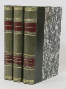 PONSIGNON (Maurice). Histoire générale de la Champagne et de la Brie. Chalons-sur-Marne, Martin frères ; Paris, Alphonse Picard, 1885 ; 3 vol. demi-basane vert sapin, dos à nerfs orné de motifs dorés, pièces d’auteur et de titre rouges,...