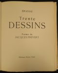 • BRASSAÏ (Gyula Halasz, dit). Trente desins. Poème de Jacques Prévert. [Paris], Éditions Pierre Tisné, 1946 ; gr. in-4, en ff., couverture illustrée rempliée.