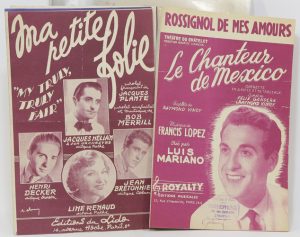 On trouve, entre autres : Mistinguett, Maurice Chevalier, Willems, le Show Boat au Théâtre du Châtelet, Alibert, Annie Cordy, Luis Mariano, etc