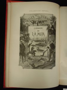 VERNE (Jules). Voyages extraordinaires. L'invasion de la mer.– Le Phare du bout du monde. Paris, Hetzel, [vers 1905] ; gr. in-8, cartonnage de l’éditeur polychrome, type « à un éléphant et au titre dans l'éventail », dos au phare,...