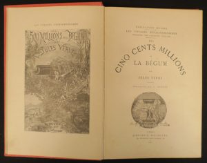 VERNE (Jules). Voyages extraordinaires. Vingt mille lieues sous les mers. Paris, Hachette, s. d. ; cartonnage rouge noir et or à un éléphant. On joint : • Les Cinq cents millions de la Bégum. Paris, Hachette, 1921