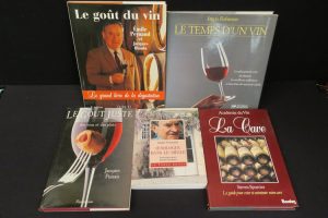 [VINS.– ŒNOLOGIE]. Ensemble de 5 ouvrages sur le vin et l’œnologie.  ; 5 vol.. • ROBINSON (Jancis). Le Temps d’un vin. Les plus grands vins du monde, les meilleurs millésimes et leur date de maturité idéale. Paris, M. A. Éditions,...