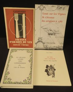 [VINS.– TERROIRS]. Ensemble de 9 ouvrages sur les terroirs et vignobles de France.  ; 9 vol.. • RAMAIN (Paul). Les Grands vins de France. Marseille, Jeanne Laffitte, s. d. Réédition de l’édition 1931. • CURONONSKY. France paradis du vin...