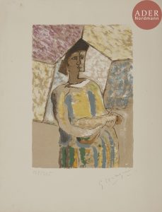 d’éditeur...Édition originale tirée à 225 exemplaires sur vélin d’Arches, illustrée en premier tirage d’une lithographie originale à pleine page numérotée et signée par Georges BRAQUE (1882-1963) et de 19 reproductions en couleurs d’œuvres du peintre dont 9 à pleine page..Les exemplaires sont signés par l’éditeur et l’auteur à la justification..Exemplaire parfaitement conservé présentant malgré tout quelques rousseurs éparses, plus prononcées aux pages 64 à 68. Mouillures au dos de la chemise.
