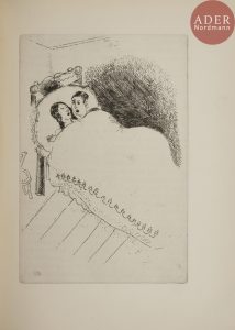 couverture conservée (reliure moderne)...Édition originale illustrée de 5 eaux-fortes hors texte de Marc CHAGALL (1887-1985)..Un des 765 exemplaires numérotés sur Lafuma de Voiron..Dos légèrement passé. Bords des couvertures insolés.