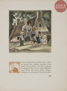 et étui...Édition exécutée sous la direction artistique de Maximilien Vox, tirée à 235 exemplaires. Elle comprend une couverture entièrement illustrée et 73 bois originaux en couleurs dessinés et gravés par Pierre FALKÉ (1884-1947), dont un frontispice et 17 lettrines..Un des 200 exemplaires sur vélin d’Arches à la forme, celui-ci enrichi du prospectus de parution et d’une épreuve de 10 pages de l’ouvrage..Exemplaire parfaitement conservé. Dos de la chemise passé.