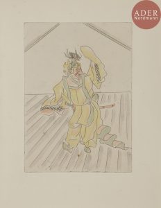 couverture rempliée...Édition originale de ce recueil composé par Claudel à l’occasion de son second séjour en Extrême-Orient de 1921 à 1927. L’auteur le considérait comme un complément à Connaissance de l’Est..L’ouvrage est illustré en premier tirage de 23 compositions de Léonard FOUJITA (1886-1968), dont une orange et noir sur la couverture, 10 dessins en noir dans le texte et 12 eaux-fortes originales en couleurs hors texte. Il comprend également le dernier chapitre présenté sous la forme d’un grand tableau dépliant..Tirage à 545 exemplaires. Un des 425 sur vergé d’Arches..Déchirures au dos.