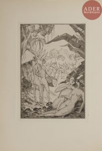 Française, 1921. — In-12, 181 x 125 : 116 pp., (2 ff. dernier blanc), couverture illustrée. Broché, couverture rempliée...Sylvain Laboureur, Catalogue complet de l’œuvre de Jean-Émile Laboureur, II, pp. 45 à 47, n° 216 et 733..Édition illustrée de 3 vignettes gravées sur bois, dont une sur la couverture, et de 4 aquatintes originales à pleine page, le tout réalisé par Jean-Émile LABOUREUR (1877-1943)..Tirage à 315 exemplaires numérotés sur vélin teinté Lafuma-Navarre. Exemplaire parfaitement conservé..