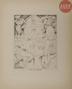 débutant par un article de Claude Roger-Marx sur Laboureur, illustré de deux compositions de l’artiste : une gravure sur bois à pleine page (Sur la Tamise) et un burin original hors texte (Sur la Marne)..Le numéro comprend également un bois hors texte d’Honoré Broutelle, un bois de Wladislaw Stoczylas, un spécimen du Médaillier de Henri de Régnier illustré par Giraldon, etc..Un des 600 exemplaires sur vélin Lafuma, complet des répertoires de la gravure contemporaine consacrés à Laboureur et à Broutelle et enrichi de 2 feuillets publicitaires de la librairie de Meuleneere et l’Union française de papeteries..Exemplaire très bien conservé.