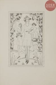Broché, couverture rempliée, chemise et étui d’édition...Sylvain Laboureur, Catalogue complet de l’œuvre de Jean-Émile Laboureur, II, pp. 191 à 196, n° 405..Édition imprimée à 200 exemplaires numérotés sur papier vélin de Rives, illustrée de 25 compositions gravées au burin par Jean-Émile LABOUREUR (1877-1943), dont une sur la couverture, une sur le titre, 3 hors texte et 20 dans le texte..Exemplaire spécialement imprimé pour le docteur Eugène Olivier, exceptionnellement enrichi d’une des rares suites des illustrations sur japon ou Madagascar..Frottements d’usage à la chemise et à l’étui.