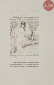 l’éditeur...Sylvain Laboureur, Catalogue complet de l’œuvre de Jean-Émile Laboureur, II, pp. 589 à 593, n° 836..Édition tirée à 250 exemplaires sur vélin de Rives, imprimée en noir et vert, ornée de 23 compositions dans le texte de Jean-Émile LABOUREUR (1877-1943), interprétées sur bois par Georges Beltrand et tirées au repérage en 5 ou 8 passages. La dernière illustration représente un autoportrait de l’artiste..Cet ouvrage, publié de façon posthume pour l’auteur et l’illustrateur, est le seul qui propose des illustrations de Laboureur non gravées par ses soins..Exemplaire très bien conservé.
