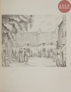 chemise et étui de l’éditeur...Sylvain Laboureur, Catalogue complet de l’œuvre de Jean-Émile Laboureur, II, pp. 283-284, n° 543bis..Édition imprimée à 216 exemplaires, publiée par les soins de la société bibliophilique de Nancy « Beaux Livres - Grands Amis ». Elle est illustrée de 20 gravures de Jean-Émile LABOUREUR (1877-1943). Comme le spécifie Sylvain Laboureur, « les vingt illustrations de ce livre correspondent à des planches dont le tirage n’avait pas été achevé du vivant de l’artiste. » Les cuivres ont été adaptés au format du livre..Un des 130 exemplaires sur vélin de Rives, nominatifs, comportant une suite de 4 gravures sur Guarro. Celui-ci fut spécialement imprimé pour Monsieur Daudé..Exemplaire parfaitement conservé, complet des Allocutions prononcées à l’Assemblée Générale de Beaux Livres - Grands Amis du 10 octobre 1959 à Nancy, proposant deux textes, l’un de Paul Guth intitulé Mon ami Maurice Toesca, l’autre de Claude Roger-Marx sur Jean-Émile Laboureur. Cette plaquette de 16 pages a été tirée à 250 exemplaires sur vélin Djébel. On y trouve également les 4 feuillets donnant la liste des sociétaires.