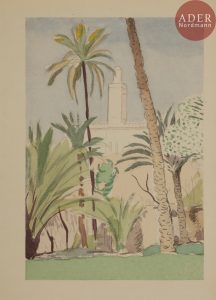 l’histoire de Moussa, petit noir de Touggourt arrivant à Alger. Elle fut composée par Marcelle Marquet, épouse d’Albert Marquet, sous le pseudonyme de Marcelle Marty. L’ouvrage forme le second volume de la « collection des arts »..Illustrée par le peintre Albert MARQUET (1875-1947), l’édition comprend 21 reproductions de dessins en noir dont 15 dans le texte et 6 à pleine page, ainsi que 5 aquarelles en couleurs dont 4 reproduites hors texte et une en tête de chapitre..Tirage à 350 exemplaires. Un des 45 sur Madagascar, enrichis d’une suite des illustrations sur le même papier. L’aquarelle de tête de chapitre n’a pas été intégrée dans cette suite..Exemplaire très bien conservé. Petite déchirure sans gravité en haut du dos.