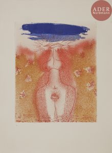 très rare de cet album de 21 eaux-fortes et aquatintes érotiques hors texte en couleurs d’André MASSON (1896-1987), tirée à seulement 59 exemplaires sur papier vélin de Rives, signés par l’artiste..« Lorsque Masson revint d’Aix à Paris, il s’établit rue Sainte-Anne, non loin de la rue Saint-Denis, à la lisière du vieux quartier du Marais où il s’installa définitivement par la suite. Avant la création du Centre Beaubourg, la rue Saint-Denis était la principale rue chaude de Paris, son prolongement de la Place Sainte-Opportune à la Porte Saint-Denis - un bon kilomètre et demi - étant bordé des deux côtés d’une rangée impressionnante de prostituées de bas étage. Cette panoplie de femmes frappa le regard de Masson, tel un studio de la forme féminine, et il conçut son « féminaire » de la rue Saint-Denis, dégageant et souvent exaltant des caractéristiques féminines dont on avait sous les yeux un si grand nombre de variantes » (Cramer)..Exemplaire parfaitement conservé.