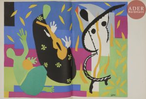numéro double 27 et 28, 1952 : couverture composée spécialement par Georges BRAQUE et nombreuses lithographies de Henri MATISSE, Georges BRAQUE, Henri LAURENS, Alberto GIACOMETTI, André MASSON, Fernand LÉGER, Joan MIRÓ, Francisco BORÈS, Marcel GROMAIRE et Marc CHAGALL..Dos légèrement bruni, quelques défauts d’usage au cartonnage. Une lame a transpercé sur 8 millimètres le premier plat et les 30 premières pages. Légères coupures sur le premier plat.