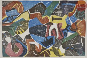 originale rare, illustrée de 3 compositions gravées sur bois en couleurs du peintre et graveur Jan VOSS (né en 1936), dont une sur double page numérotée et signée par l’artiste..Tirage à 153 exemplaires sur papier vélin de Rives, signés par l’auteur et l’artiste..Exemplaire parfaitement conservé.