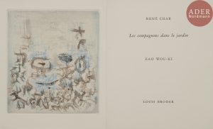 [WOU-KI (Zao)] - CHAR (René)..Les Compagnons dans le jardin..[Paris] : Louis Broder, [1957]. — In-16, 166 x 136 : 51 pp., (8 ff. 4 derniers blancs), couverture de papier japon imprimé. En feuilles, couverture rempliée, chemise et étui de...