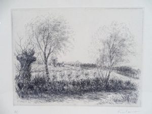FRELAUT (Jean) - 1879-1954 - Chapelle de campagne - Gravure à l’eau-forte, signée et datée 1951 dans la page en bas à gauche, contresignée au crayon dans la marge en bas à droite -