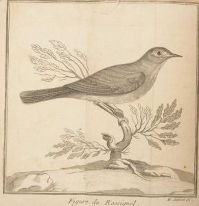 [Arnault de Nobleville]. Aëdologie Ou Traite Du Rossignol franc, ou chanteur. Paris, Debure l’aîné, 1751. In-12 de [2]-7-[3]-156 pages, basane, dos orné (Reliure de l’époque)