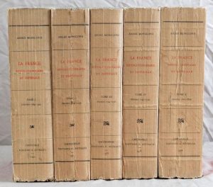 MONGLOND (André) - La France Révolutionnaire et Impériale. Annales de Bibliographie méthodique et description des livres illustrés - Grenoble ; Arthaud, 1930-1938 - 5 forts volumes In-8° brochés couvertures rempliées (1 dos fendu) -
