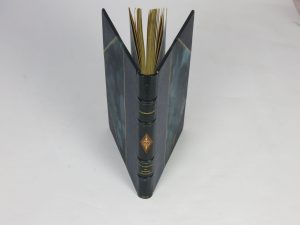 auteur, date, et titre dorés, petit losange rouge et doré en mosaïque au centre du dos.