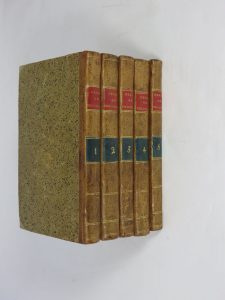 demi-basane fauve, plats recouverts de papier moucheté, dos lisses à faux nerfs, pièces de titre en papier rouge et papier bleu pour la tomaison.