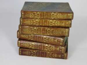 Dos lisses avec décor romantique doré, auteur, titre et tomaison dorés. Reliure modeste, petits défauts d'usage, dos insolés.