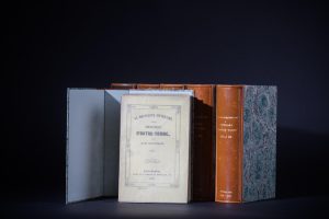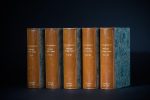 Ces 20 volumes sont protégés par 5 chemises avec étui renfermant chacun 4 volumes, réalisation contemporaine en demi-veau havane, avec auteur, tomaison et titre dorés, ainsi que la ville et les dates.