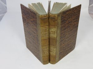 demi-basane marron, dos lisses avec titre, auteur, et tomaison dorés.