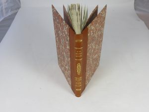 orné avec auteur et titre dorés, plats recouverts de papier à la cuve ivoire gris et havane.