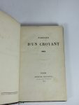 LAMENNAIS (Félicité de) - Paroles d'un croyant 1833. A Paris, chez Eugène Renduel.1834. 1 volume in-8° relié en demi-basane marron, dos lisse avec filets et fers décoratifs dorés en tête et en queue ; plats de papier marbré, tranches...