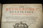 PASQUIER Estienne - Les recherches de la France d'Estienne Pasquier. A Paris, chez Laurent Sonnius, 1617. 1 fort volume in-4°, reliure d'époque en basane fauve, double encadrement à la Duseuil d'une large dentelle dorée, avec fleurs aux angles...