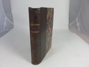 FLAUBERT Gustave - Salammbô. Paris, chez Michel Lévy, 1863. 1 volume in-8°, reliure en demi-maroquin chocolat à la Bradel, tête dorée. Défauts au dos, cuir un peu sec, restauration hasardeuse en coiffe.