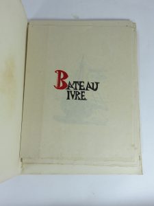NOZAL (Julie Jacques) - Rimbaud Arthur - Le bateau ivre. Saint-Briac, Les Émaux de Saint Briac, 1949. 1 volume d'environ 20 feuillets doubles dans sa chemise de protection. Quelques piqures ; page de titre légèrement pliée.