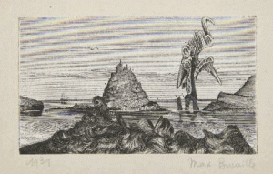 BUCAILLE Max. COLLAGE ORIGINAL SIGNÉ. 1939. 8,5 x 14,5 cm, sous passe-partout.