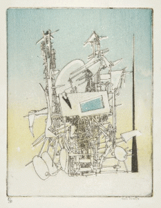 ► UN DES 10 EXEMPLAIRES JUSTIFIÉS SUR VÉLIN D'ARCHES, GRAND PAPIER APRÈS UN EXEMPLAIRE UNIQUE SUR JAPON, COMPORTANT 3 EAUXFORTES DONT 1 MONOTYPE EN COULEURS TOUTES NUMÉROTÉES ET SIGNÉES PAR YVES TANGUY.