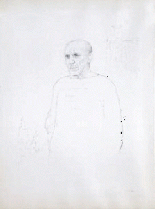 [PICASSO Pablo]. WREDE Maria (1898-1981). PORTRAIT DE PABLO PICASSO. DESSIN ORIGINAL AU CRAYON SIGNÉ. Vallauris, 1954. 59 x 43,5 cm.