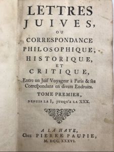 ANONYME [ARGENS (Marquis d')] - Lettres Juives ou correspondance philosophique, historique et critique entre un juif voyageur à Paris et ses correspondans en divers endroits. 2 tomes en 1 vol. in-12 relié plein veau époque, dos lisse à caissons...