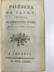 [CAZIN] SAPHO - Poésies suivies de différentes poésies dans le même genre. 1 vol. in-18 relié plein veau glacé époque, dos lisse à caissons fleuris, triple filet d'encadrement sur les plats, tranches dorées. Londres s.n. [Cazin] 1781.
